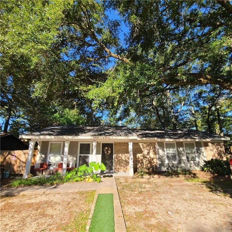 THE MOST OPEN CONCEPT YOU WILL FIND! GIGANTIC GREAT ROOM with VAULTED CEILINGS makes the room feel even LARGER! The ULTIMATE GATHERING SPACE! RECESSED LIGHTING and excess windows create MAXIMUM BRIGHTNESS. Perfectly placed kitchen has beautiful STONE COUNTER TOPS/BREAKFAST BAR, stainless steel appliances and built-in pantry. Master suite has remote fixture and totally renovated full bath. Fully updated hall bath. Wide elegant foyer entrance. Over-sized laundry room. NEW super durable flooring. NEW ROOF! Covered front porch. Nice back patio. Storage shed. Private back yard. Interstate 10 quick access to Florida and Mississippi. A MUST SEE WITH 4 BEDROOMS!